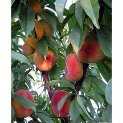 Это плоский персик. Благодаря своей форме, кожура находится близко к косточке, поэтому вкус получается более насыщенней. Деревья морозостойкие, сильнорослые, урожайные.